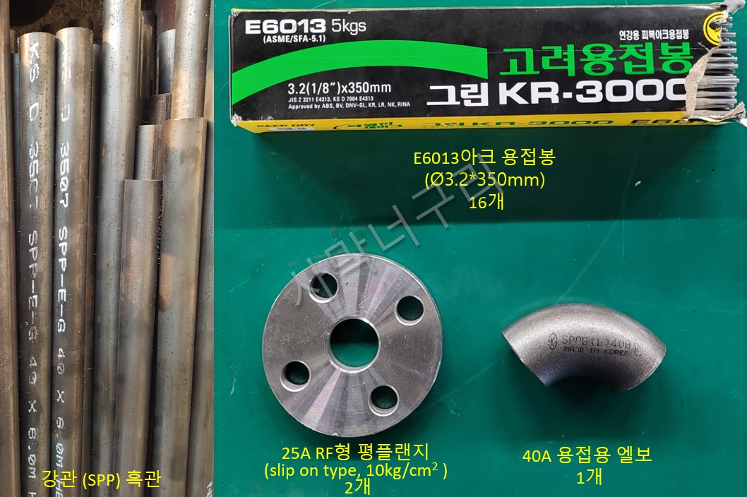 이외에도 아크용접기, 나사절삭기, 파이프렌치 등의 공구가 필요합니다.