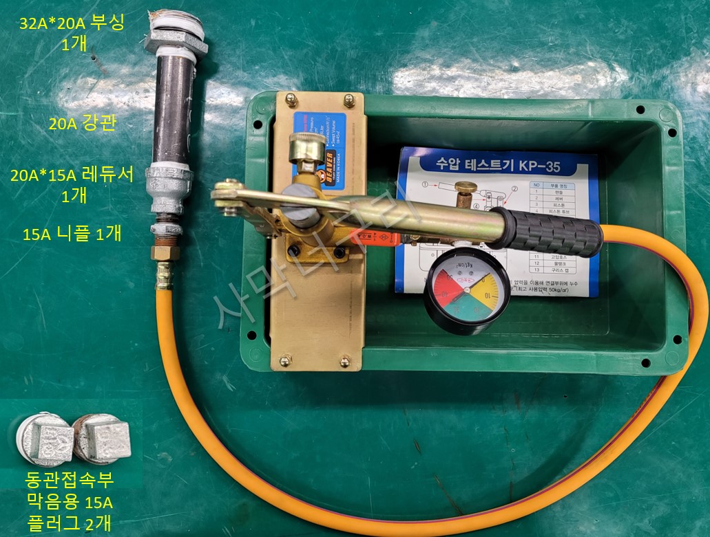 연습을 할 때 동관을 제외한 상태로 강관의 제단 및 조립 후 수압테스트를 해서 용접 상태 확인을 할 수 있습니다.